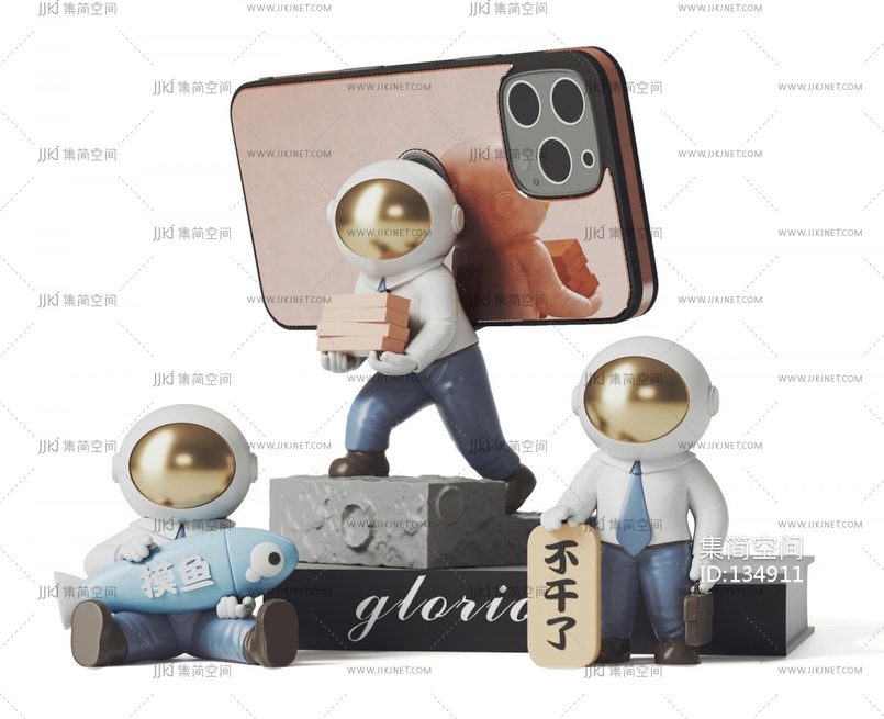 宇航员雕塑 潮玩摆件手机美陈3d模型 3d模型下载
