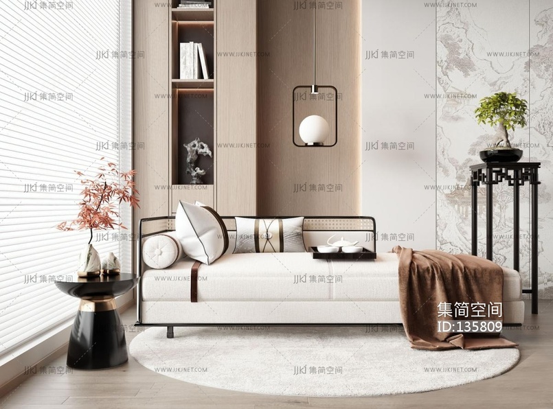 新中式贵妃椅 美人榻 3d模型下载 [模型ID:135809]