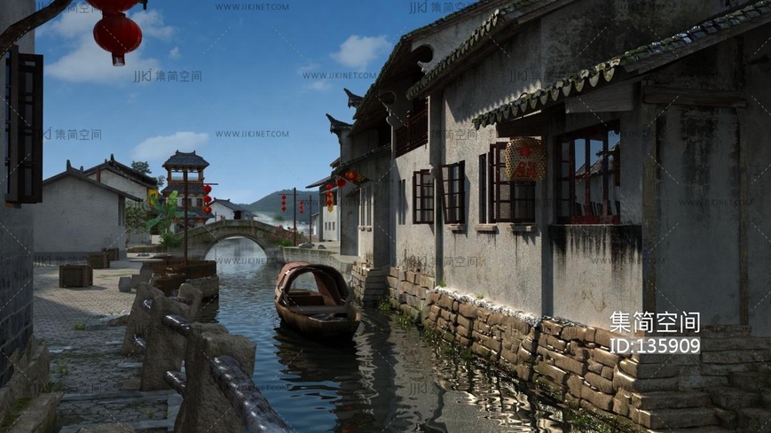 中式水巷古街 3d模型下载 [模型ID:135909]