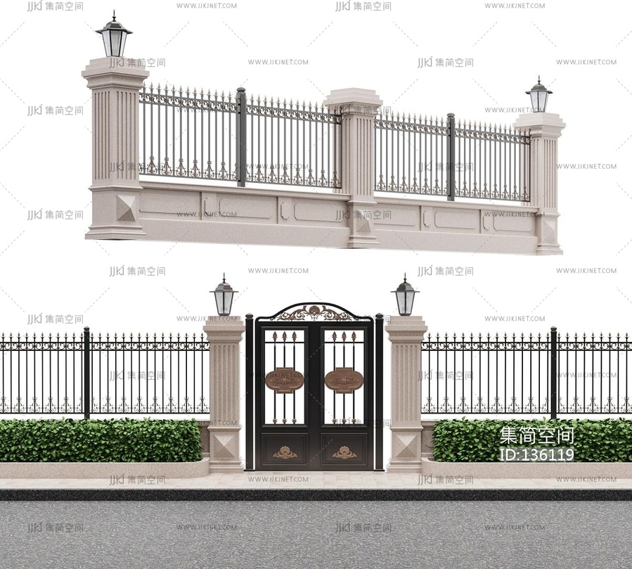 简欧式围墙大门 3d模型下载 [模型ID:136119]
