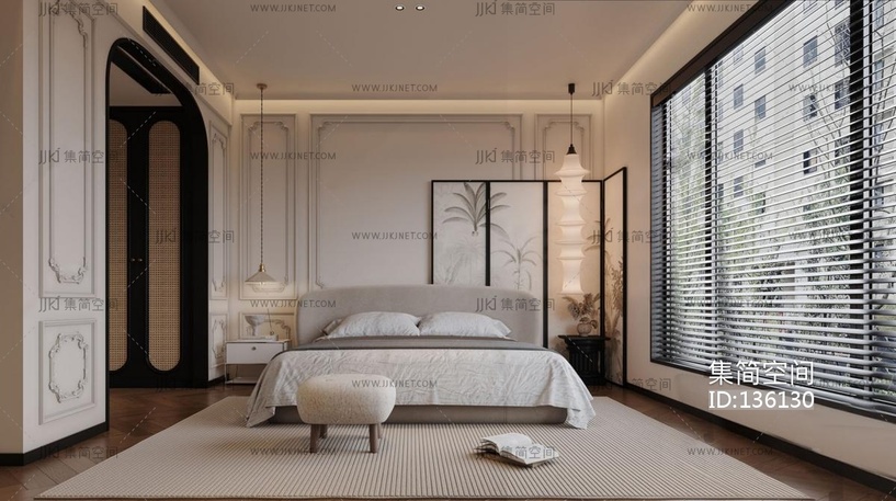 6法式中古家居卧室_主卧_飘窗卧室_高级灰卧室3D模型cr3d模型下载
