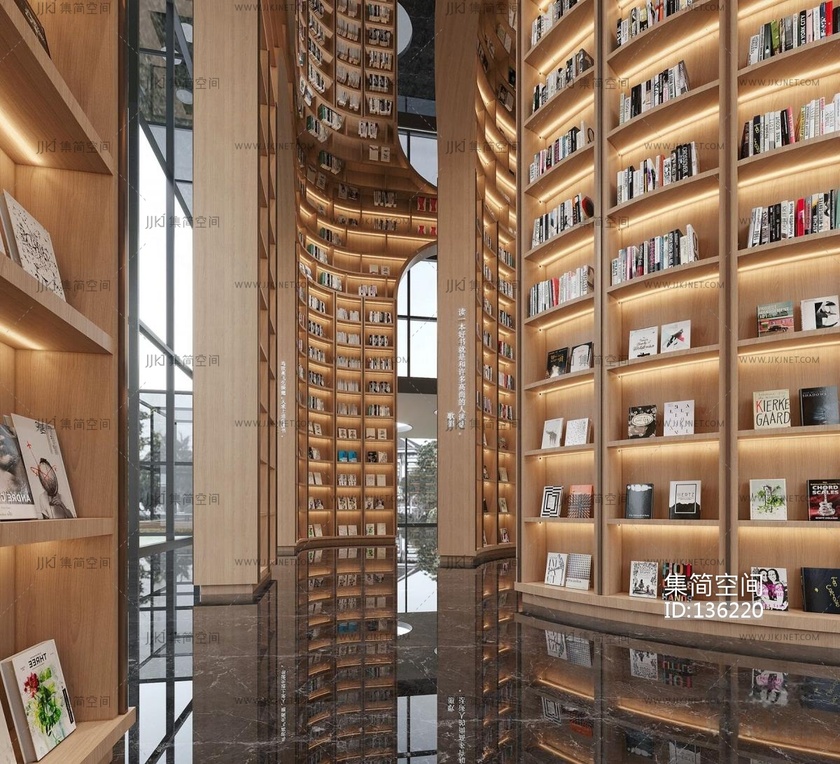 现代书吧图书馆,书店,阅读区,3d模型下载