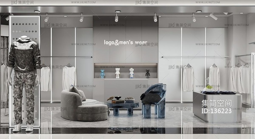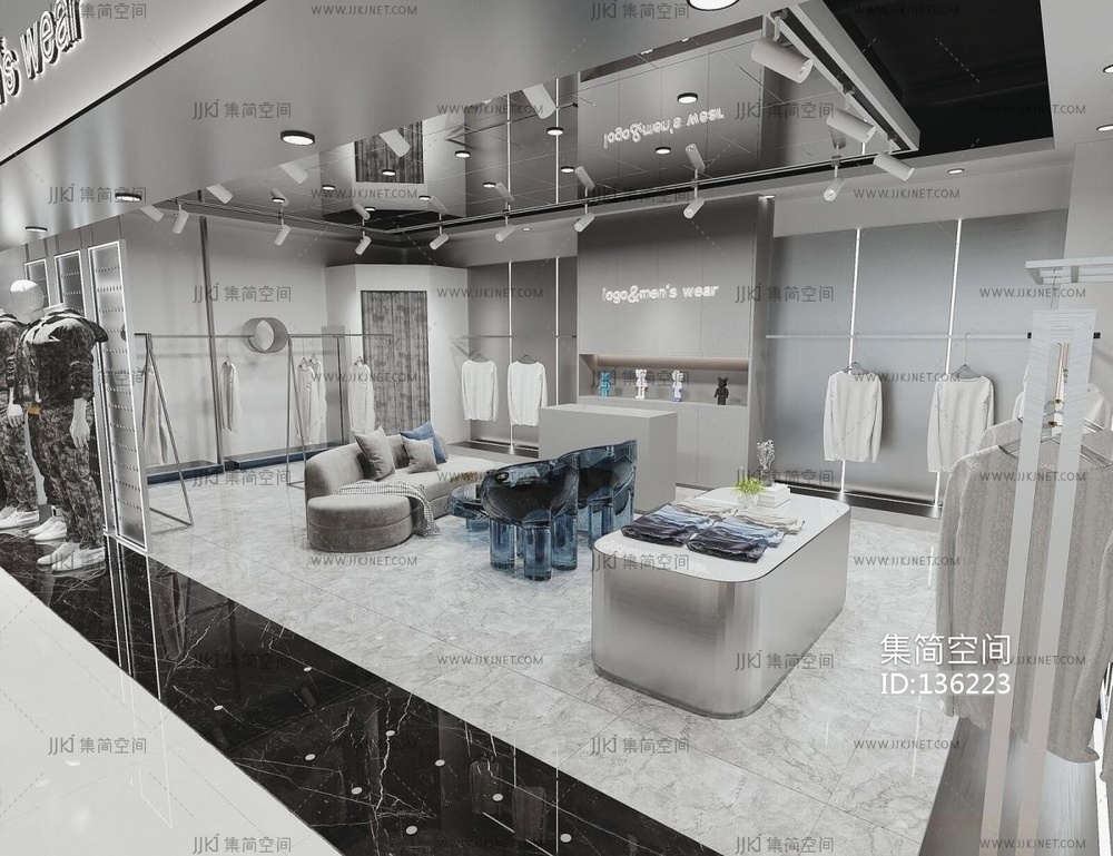 现代潮牌男装服装店3D模型 3d模型下载 [模型ID:136223]