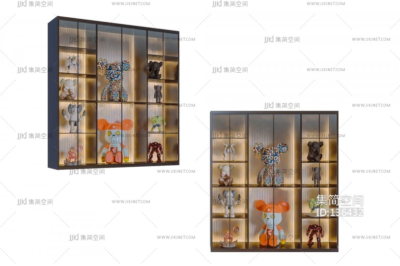现代简约手办展示柜3D模型 3d模型下载 [模型ID:136432]