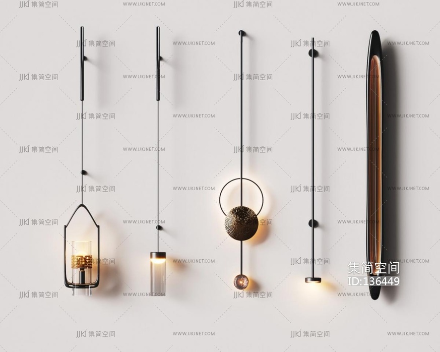 现代壁灯组合3D模型 3d模型下载 [模型ID:136449]