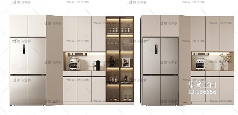 现代酒柜,,冰箱,橱柜3D模型 3d模型下载 [模型ID:136656]