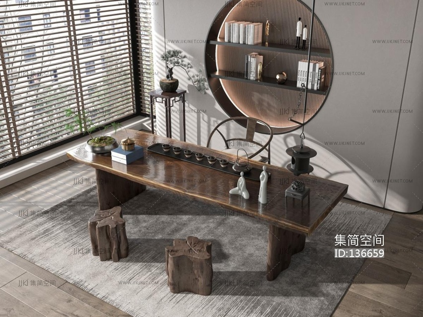 新中式茶桌椅组合 3d模型下载 [模型ID:136659]