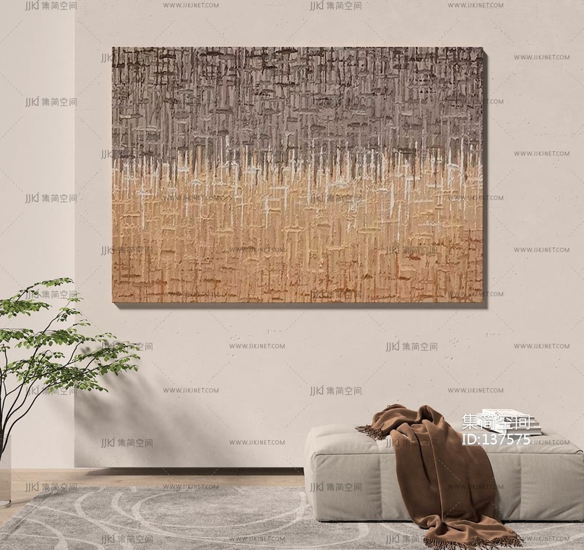 现代抽象创意装饰画,沙发凳3D模型 3d模型下载 [模型ID:137575]