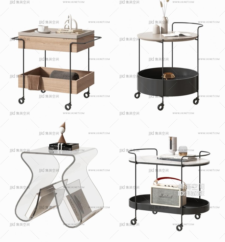 北欧边几,小推车餐车 3d模型下载 [模型ID:137658]