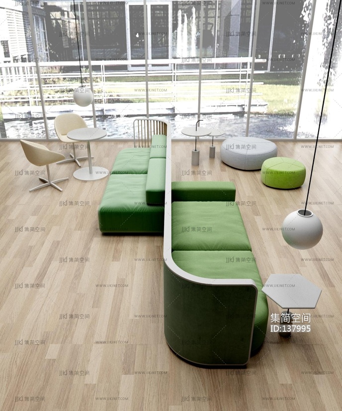 现代办公室卡座沙发3d模型下载