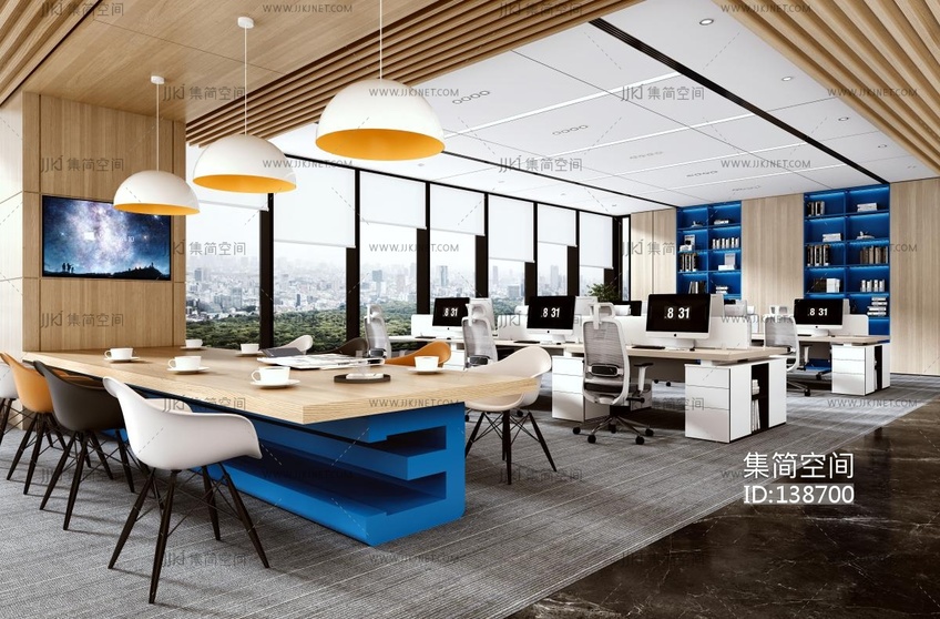 奶油风公共办公室 办公区3d模型下载