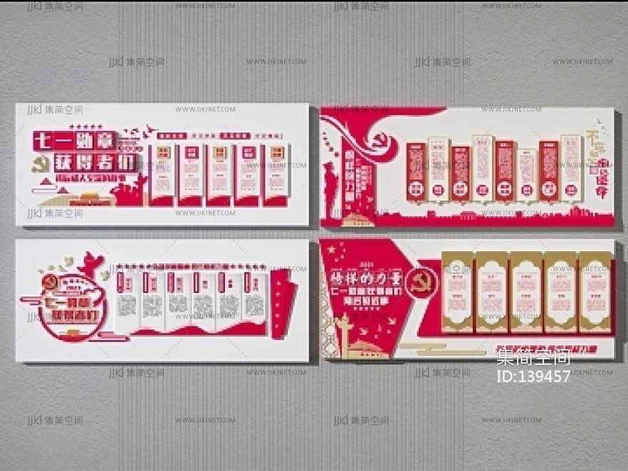 现代党建文化墙 3d模型下载 [模型ID:139457]