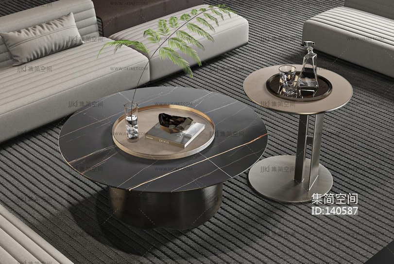 现代茶几,圆形茶几摆件3D模型 3d模型下载 [模型ID:140587]
