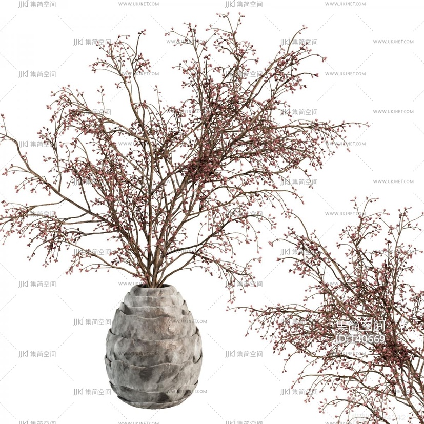 青瓷花盆中的树枝花束,植物插画3D模型cr3d模型下载