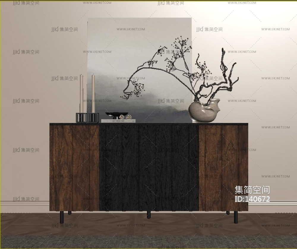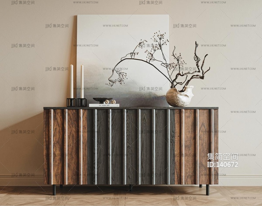 现代中古风玄关柜 3d模型下载 [模型ID:140672]