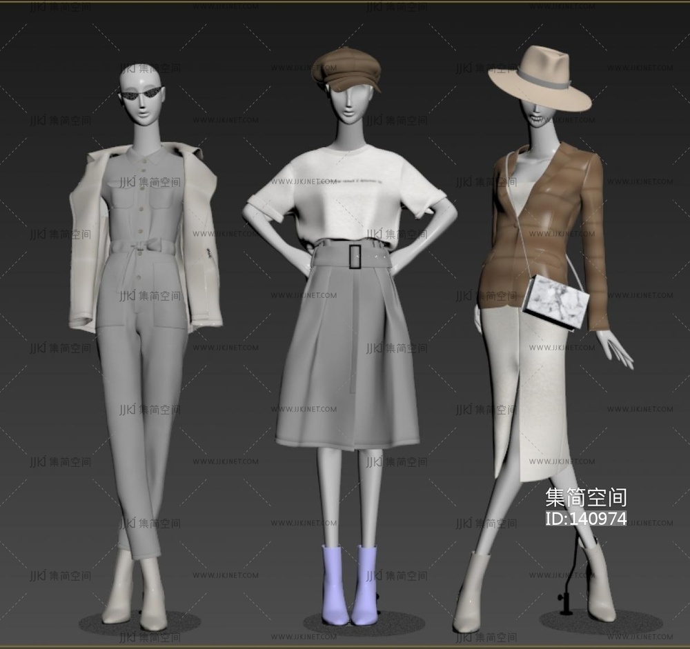 04-现代模特_服饰_鞋帽_服装_女装_橱窗_衣服_帽子_外衣_鞋子_代服装店3D模型vrrr3d模型下载