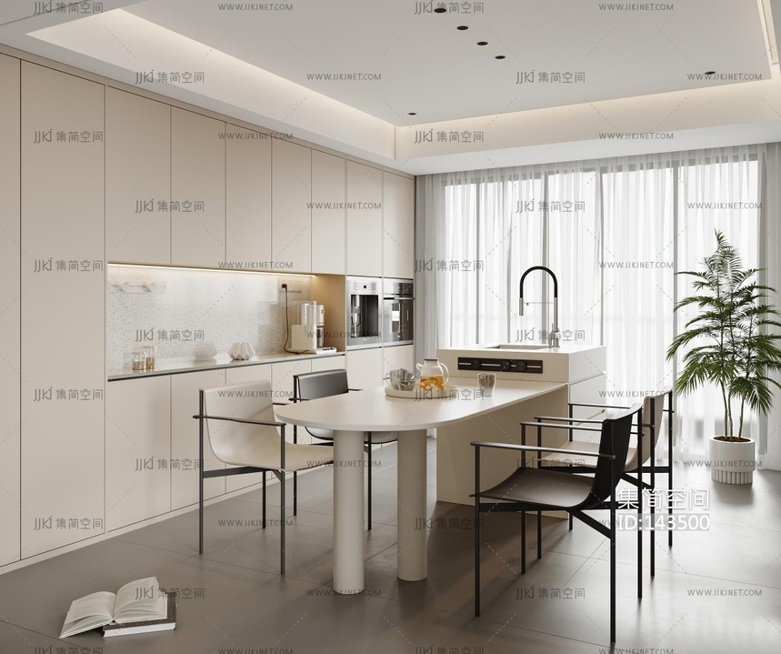 13-现代奶油风餐厅 3d模型下载 [模型ID:143500]