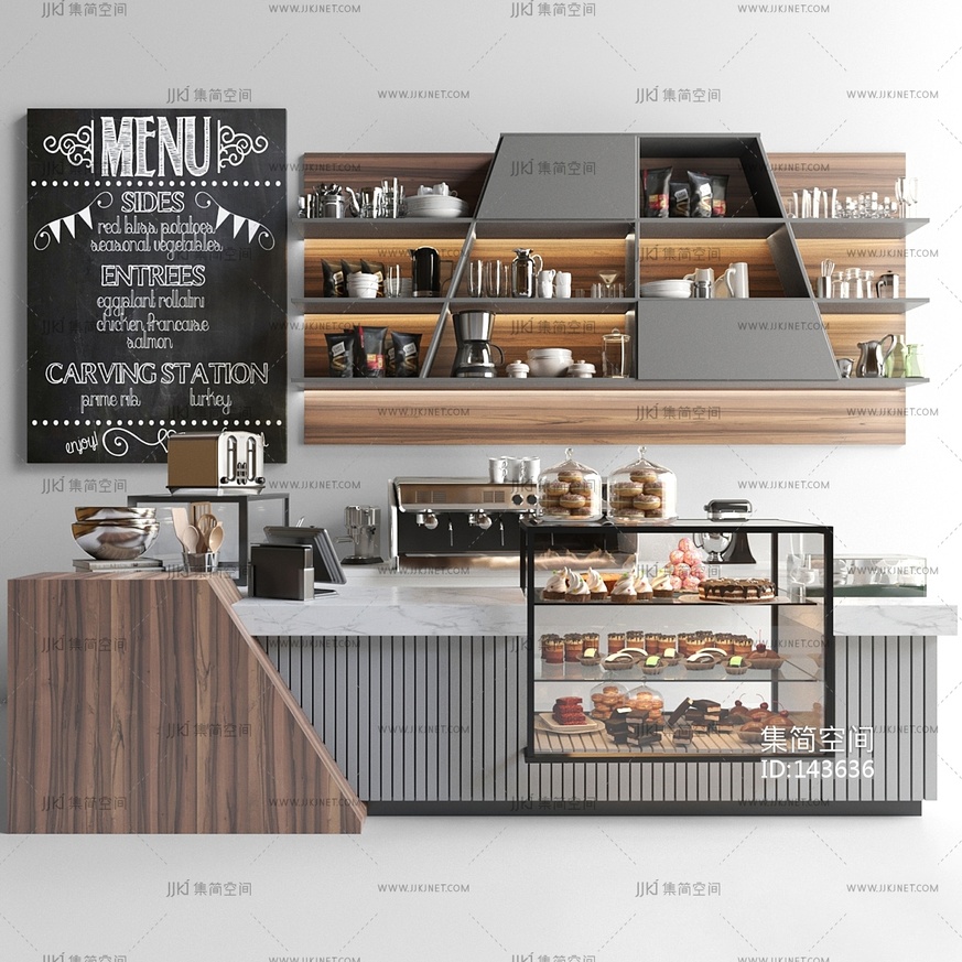 展示柜里有甜点 咖啡屋3d模型下载