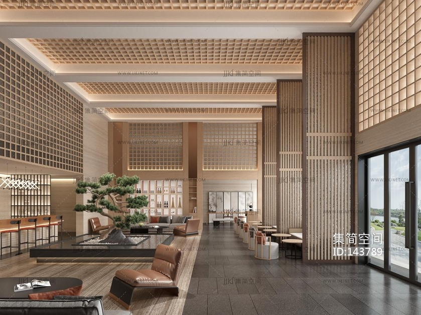 新中式酒店大堂 3d模型下载 [模型ID:143789]