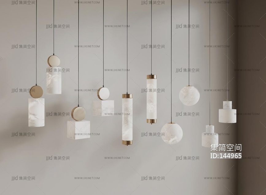 新中式山水大理石吊灯 3d模型下载 [模型ID:144965]