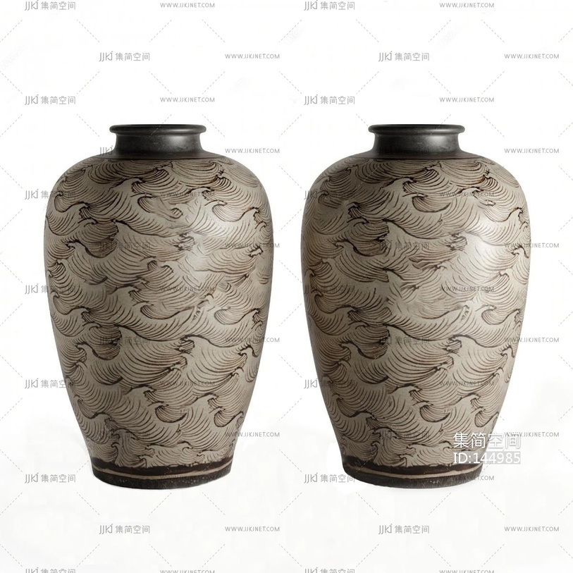 -新中式海浪花纹陶瓷瓶 3d模型下载 [模型ID:144985]