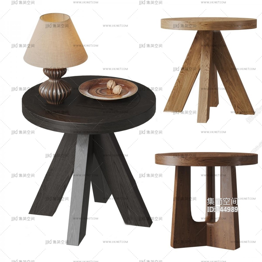 -侘寂风边几角几凳子 3d模型下载 [模型ID:144989]
