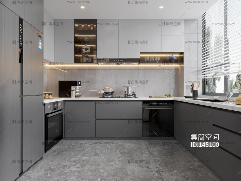 现代厨房橱柜,冰箱厨房用品3d模型下载