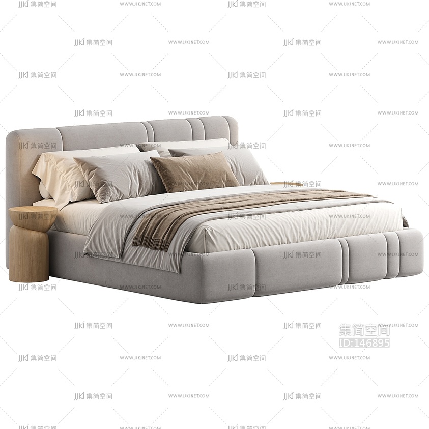 26-现代双人床_主卧床_布艺床3D模型93d模型下载