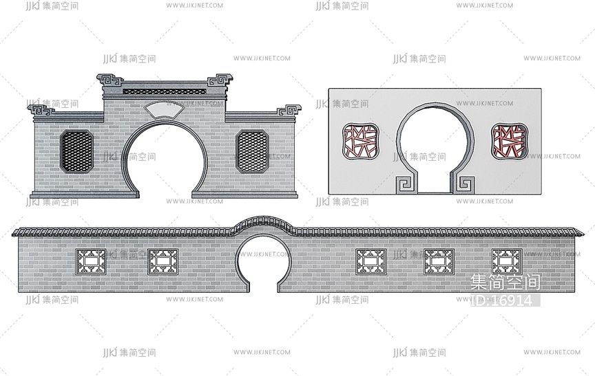 H35-0104中式院墙墙 3d模型下载 [模型ID:16914]