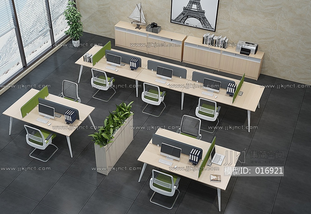 现代文员办公桌椅组合_白领员工办公桌办公椅_办公用品3D模型3d模型下载
