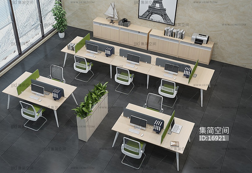 现代办公桌_办公位_工作桌_办公椅_文件柜_屏风_高柜_办公室3D模型3d模型下载