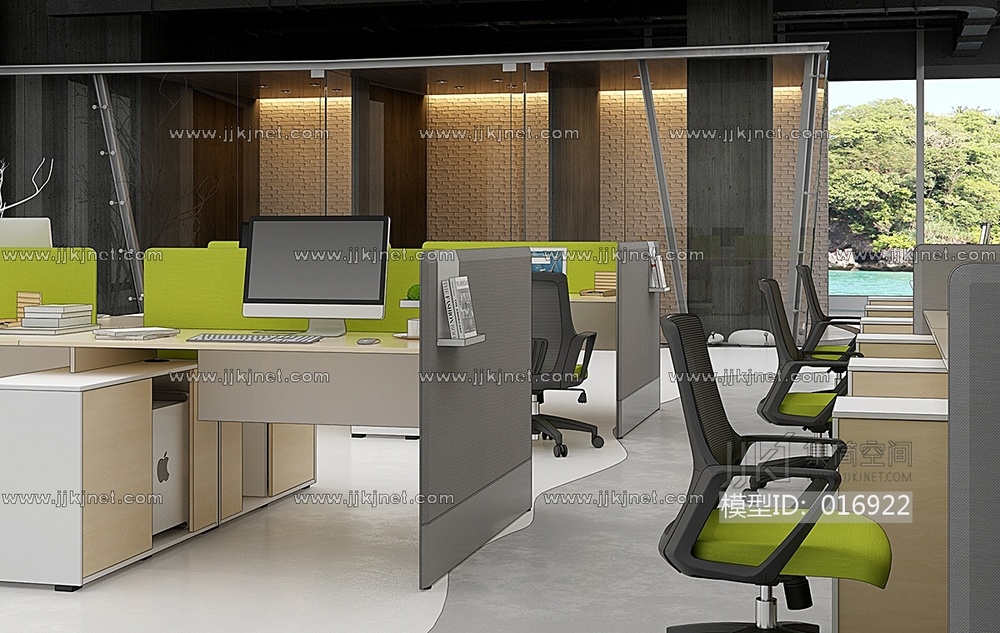 H03-0105现代办公桌椅工位组合 3d模型下载 [模型ID:16922]
