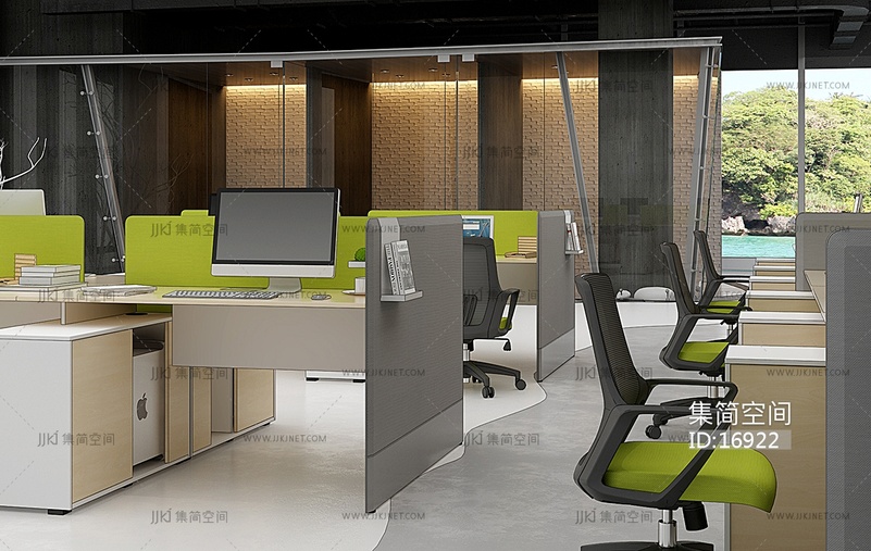 现代办公桌_办公位_工作桌_办公椅_文件柜_屏风_高柜_办公室3D模型3d模型下载