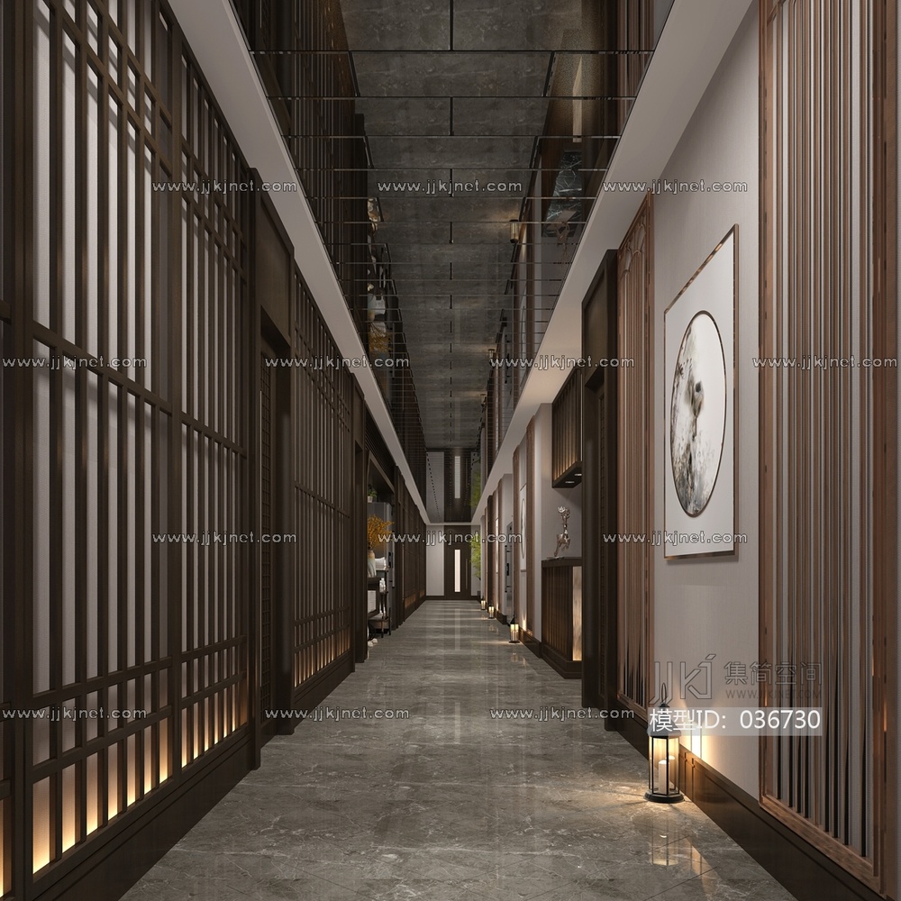 新中式KTV过道,走廊3d模型下载