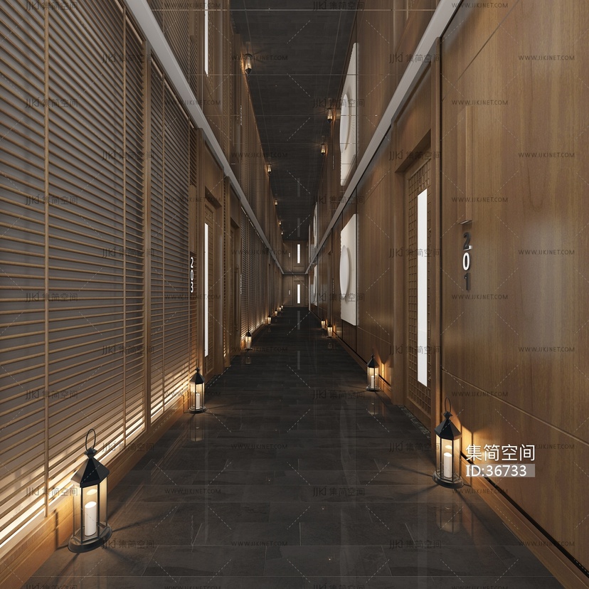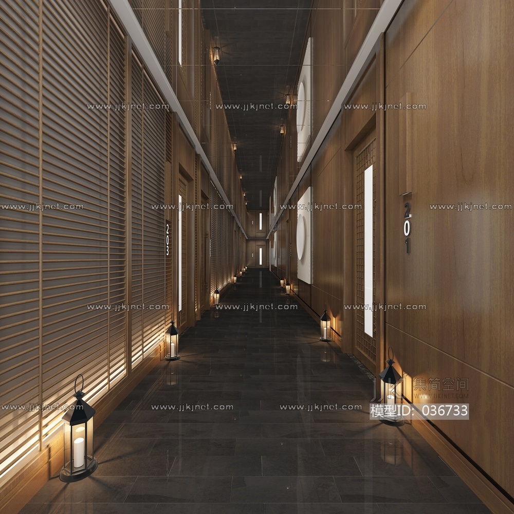 H06-0419新中式客房走廊餐饮走廊 3d模型下载 [模型ID:36733]