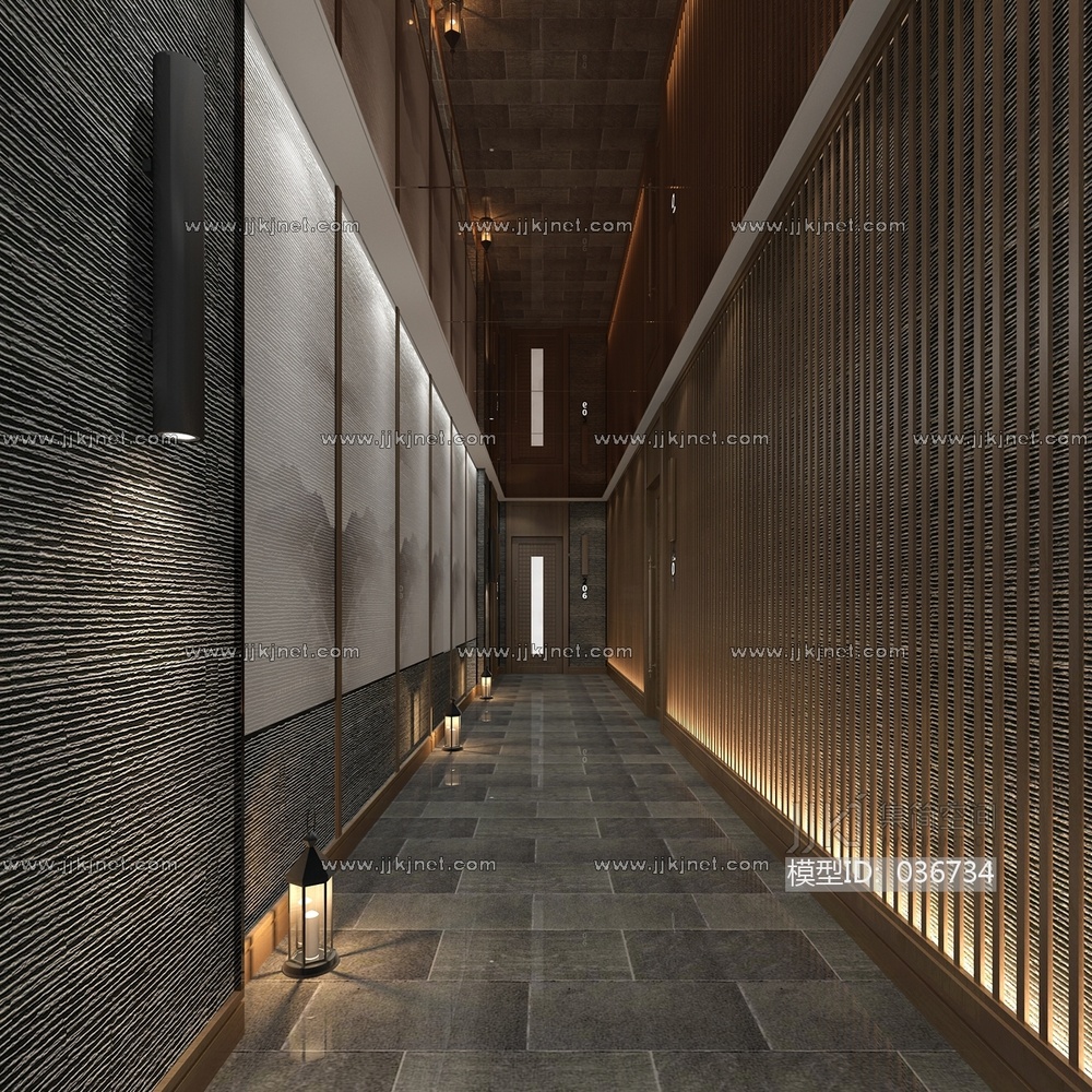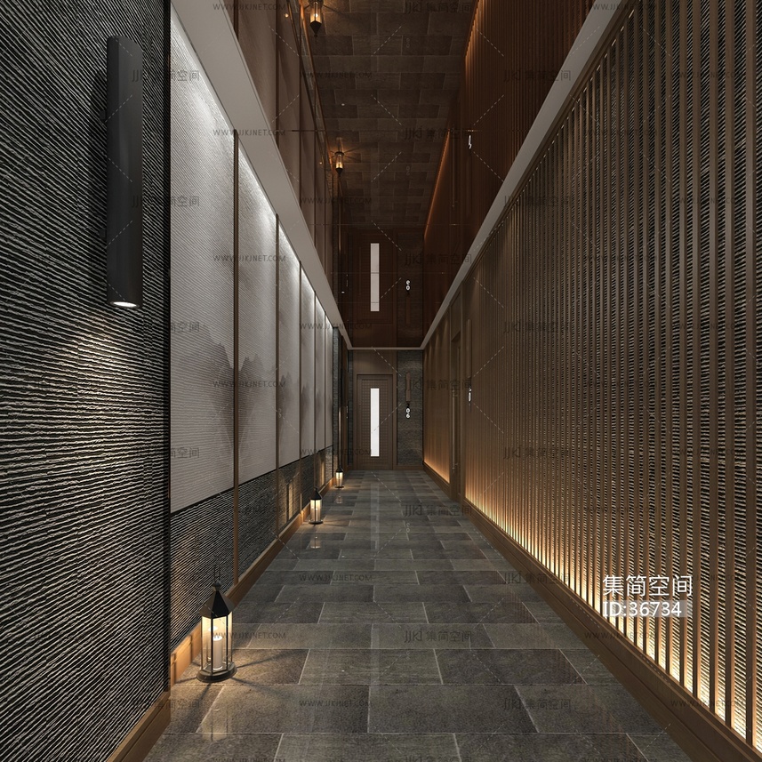 H07-0419新中式东南亚餐饮包间会所走廊 3d模型下载 [模型ID:36734]