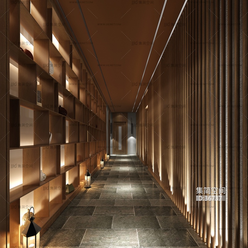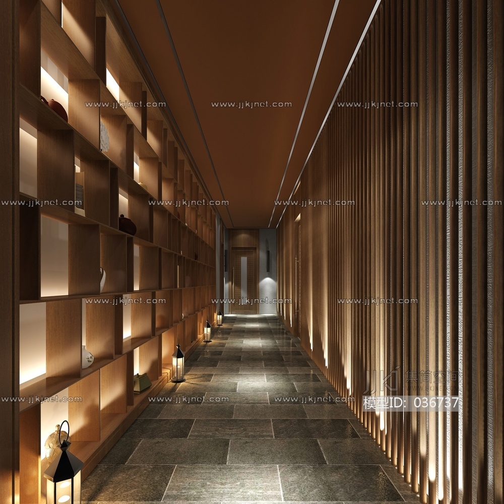 H10-0419新中式餐饮包间会所走廊 3d模型下载 [模型ID:36737]