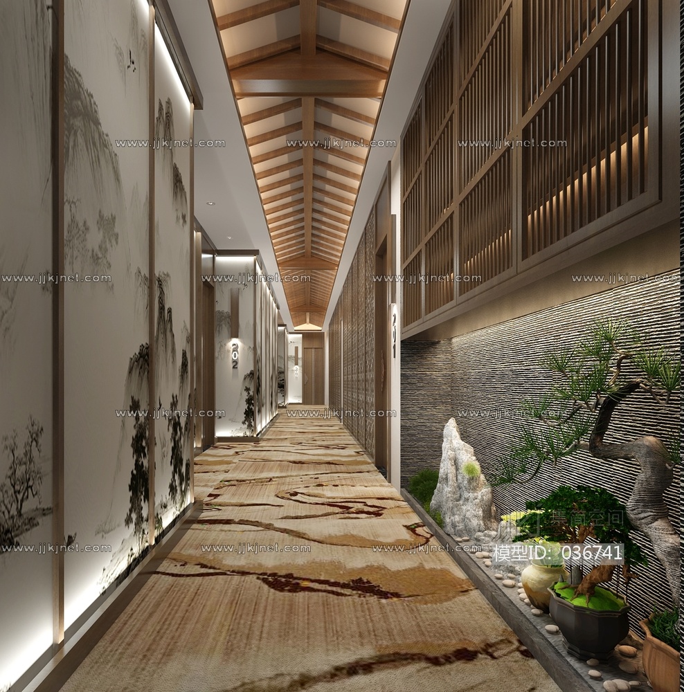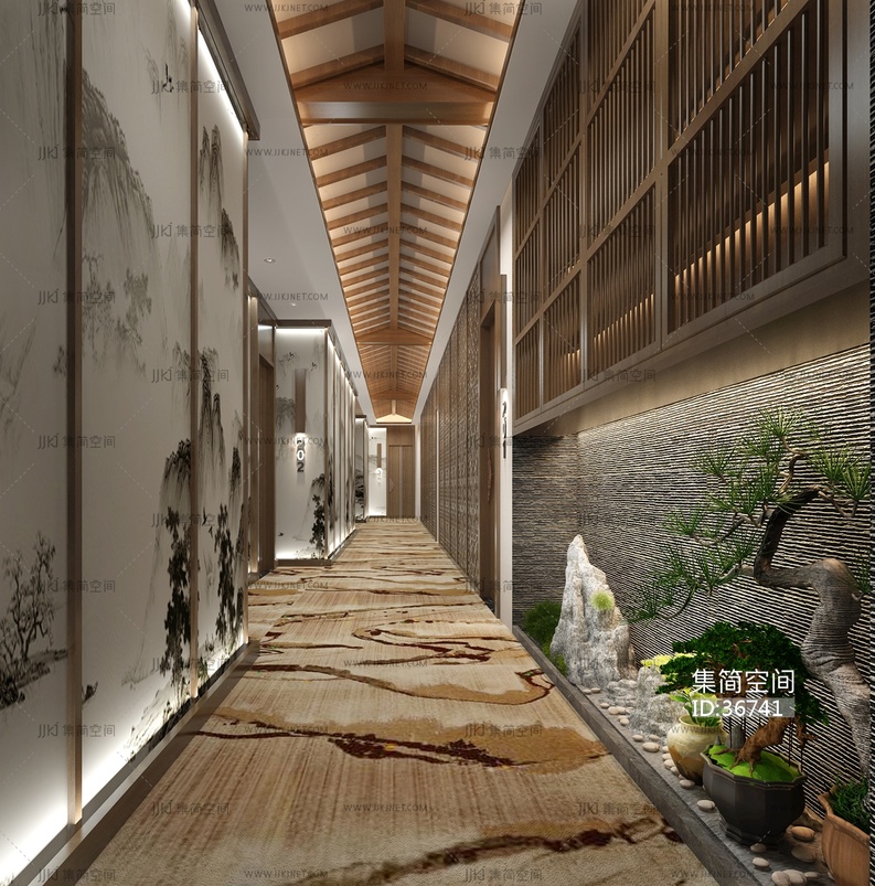 H14-0419新中式餐饮包间会所走廊 3d模型下载 [模型ID:36741]