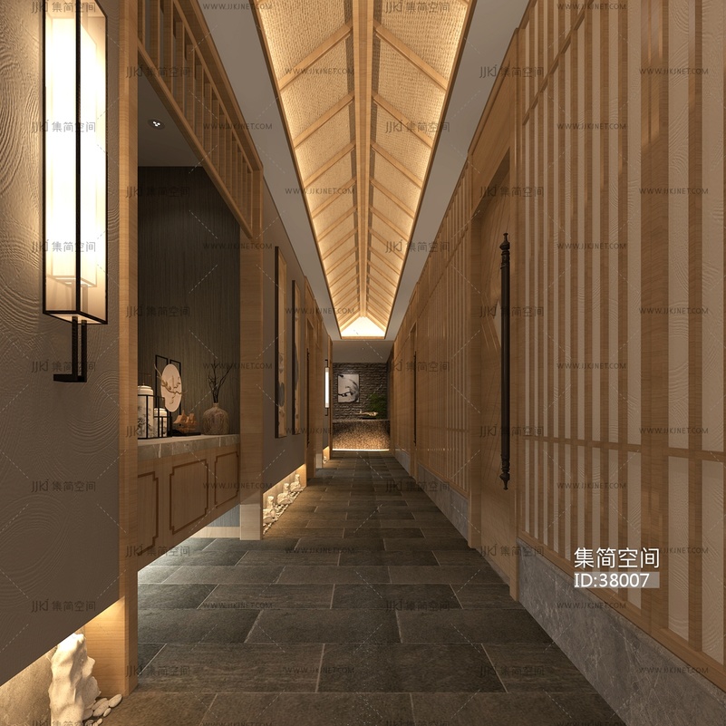 新中式KTV过道,走廊3d模型下载