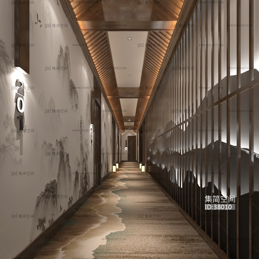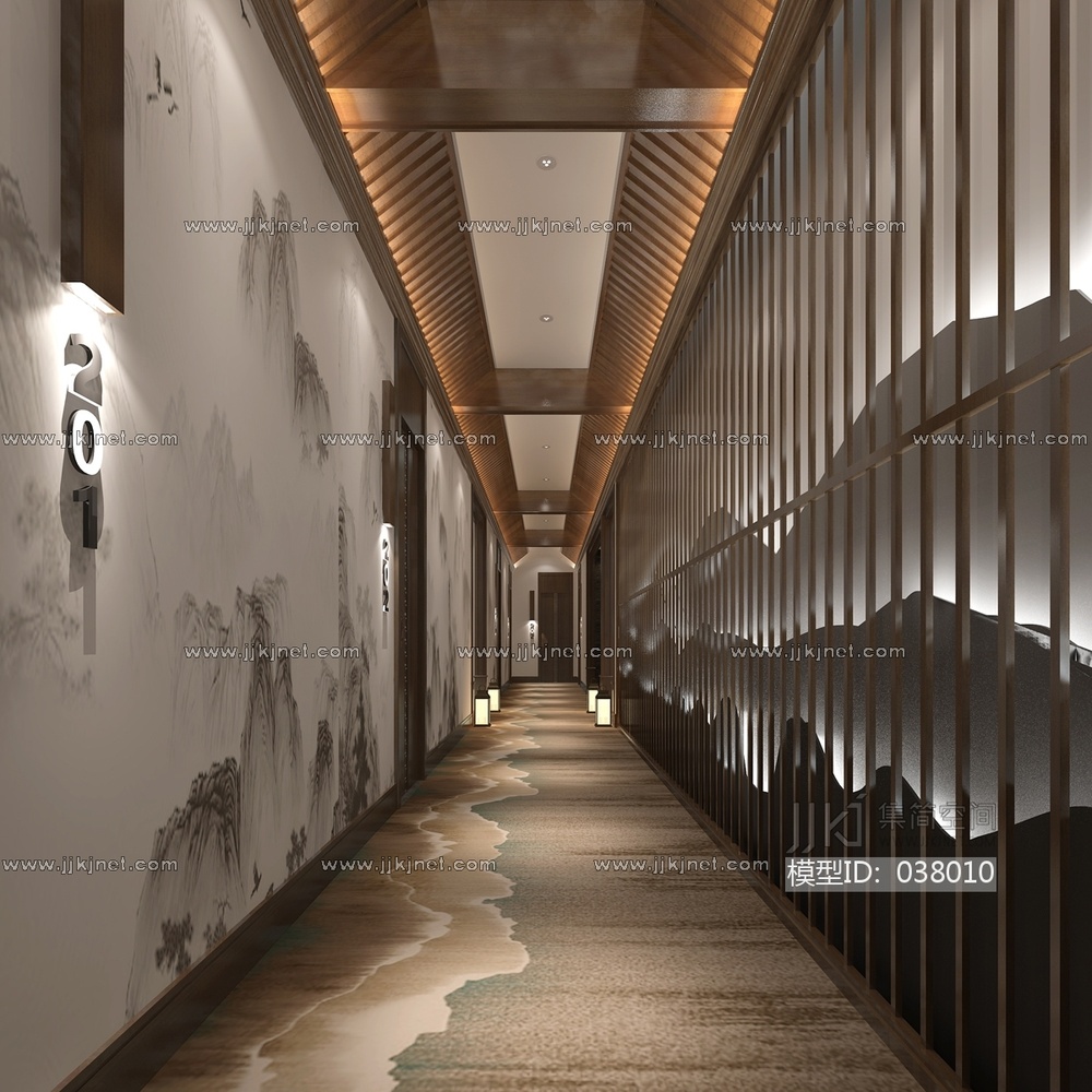 H04-0420新中式餐饮会所茶室酒店走廊 3d模型下载 [模型ID:38010]