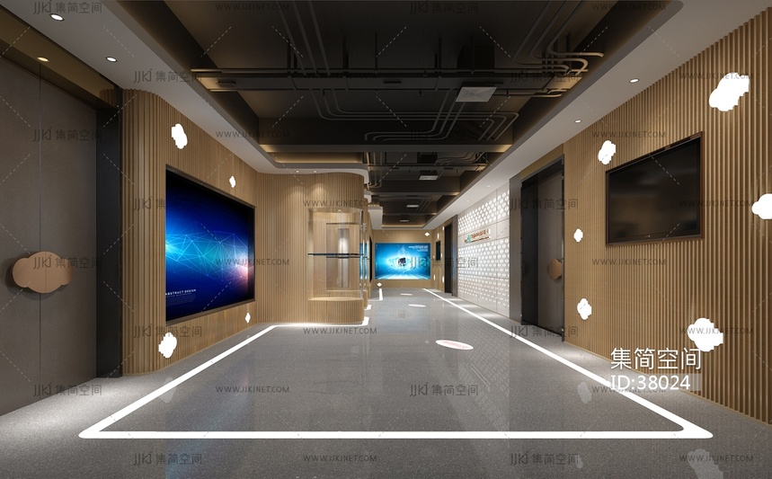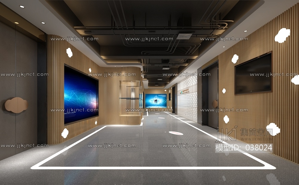 H04-0423新中式工业风前厅走廊 3d模型下载 [模型ID:38024]