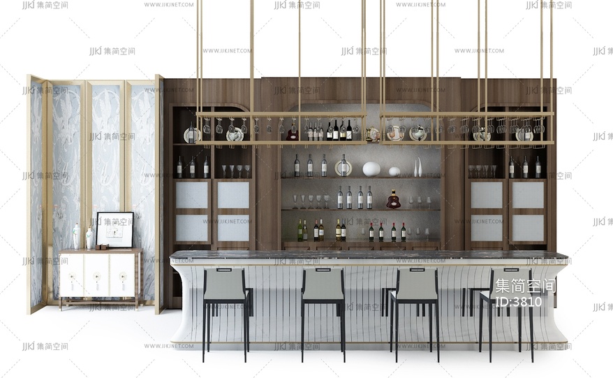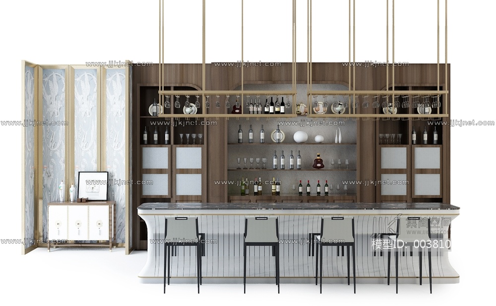 G12-0510现代欧式酒柜吧台吧椅组合 3d模型下载 [模型ID:3810]