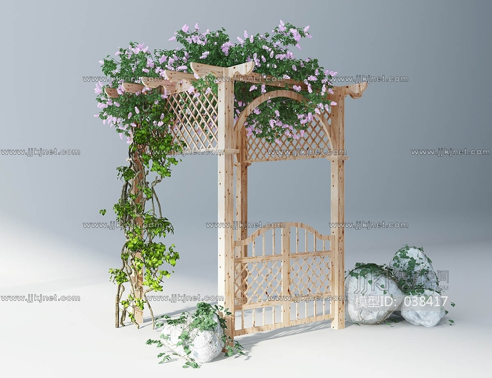 现代花架,廊架,藤蔓植物,木架子3d模型下载