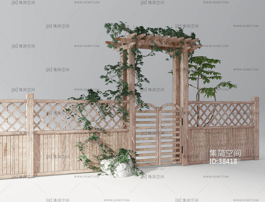Z37-0411农家院篱笆墙廊架藤蔓山庄隔墙廊架民宿栅栏 3d模型下载 [模型ID:38418]