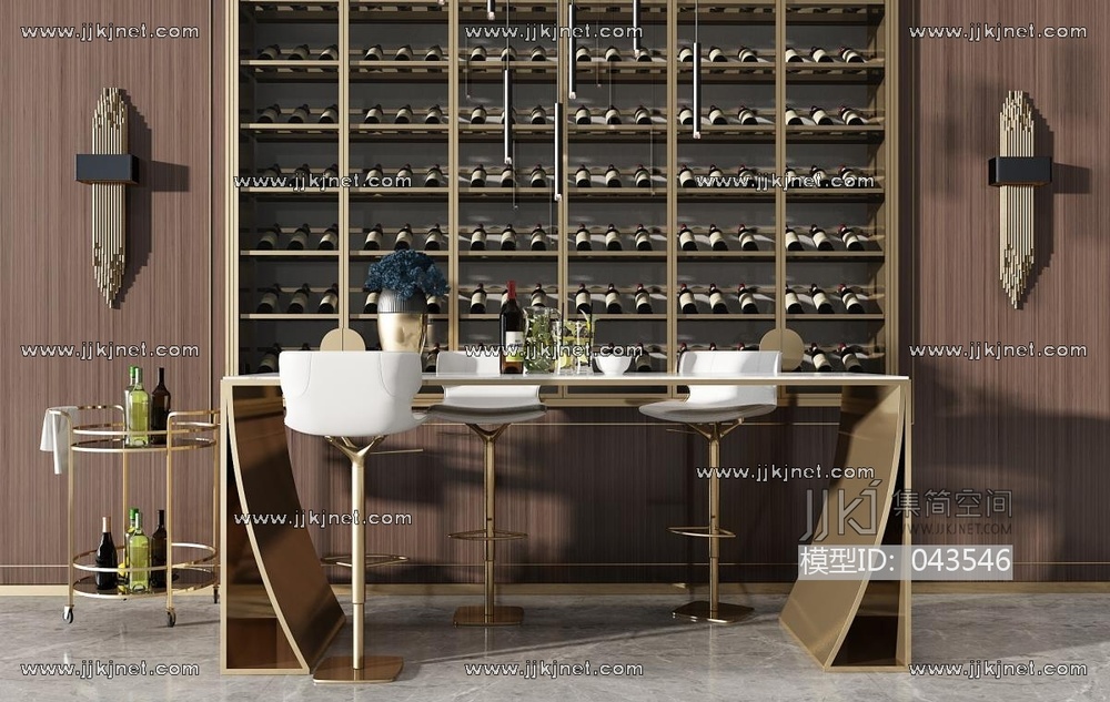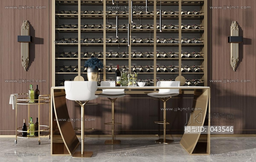 Z25-0615现代酒窖吧台台吧椅酒柜餐车小推车红酒 3d模型下载 [模型ID:43546]