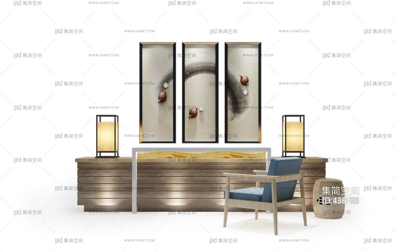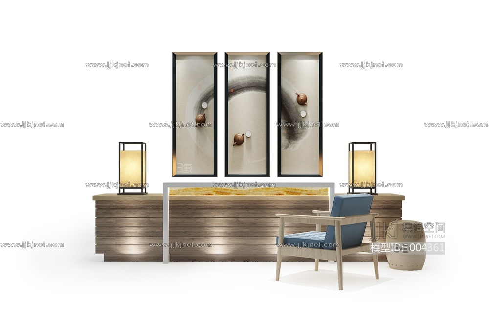 中式吧台组合 3d模型下载 [模型ID:4361]
