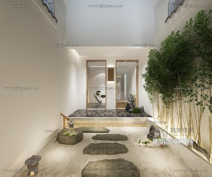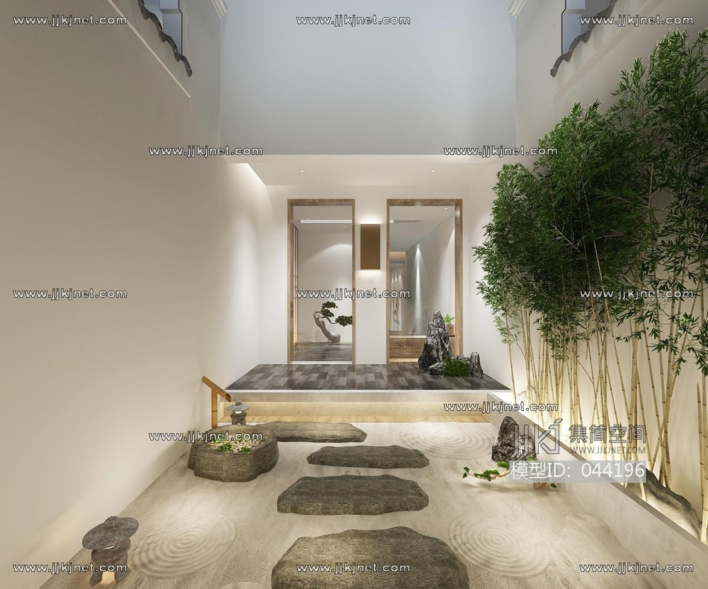 H21-0615日式韩式新中式枯山水竹子景观石头 3d模型下载 [模型ID:44196]