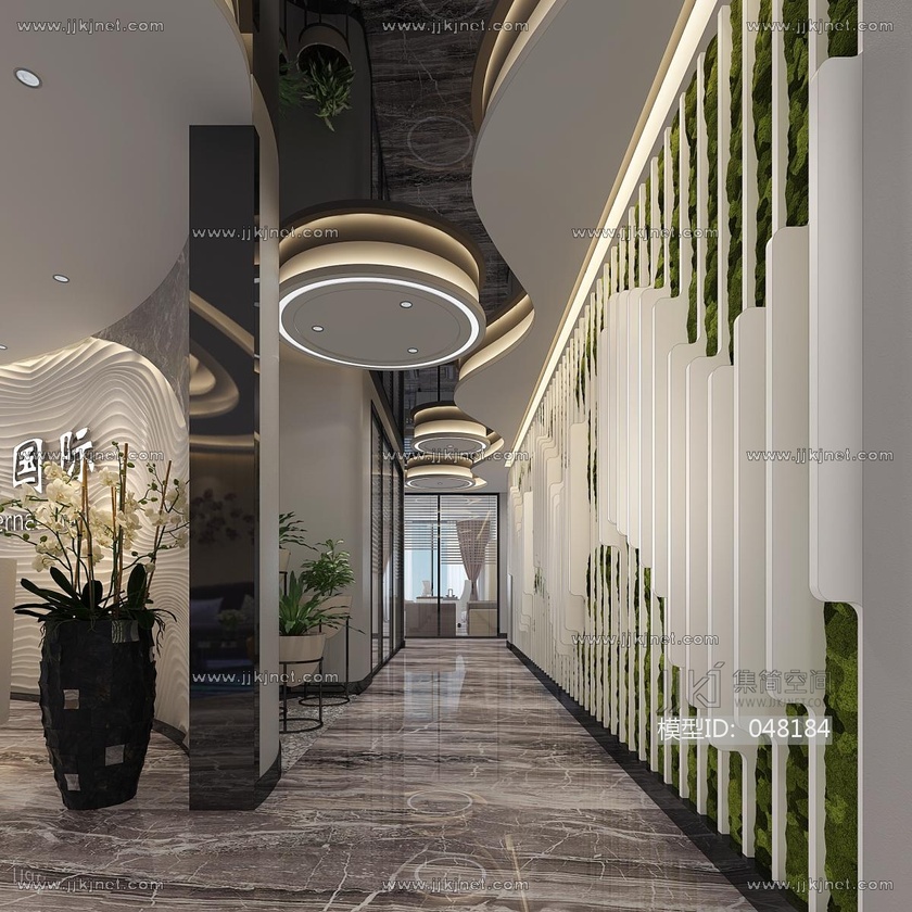 Z17-0620现代办公走廊造型墙面 3d模型下载 [模型ID:48184]