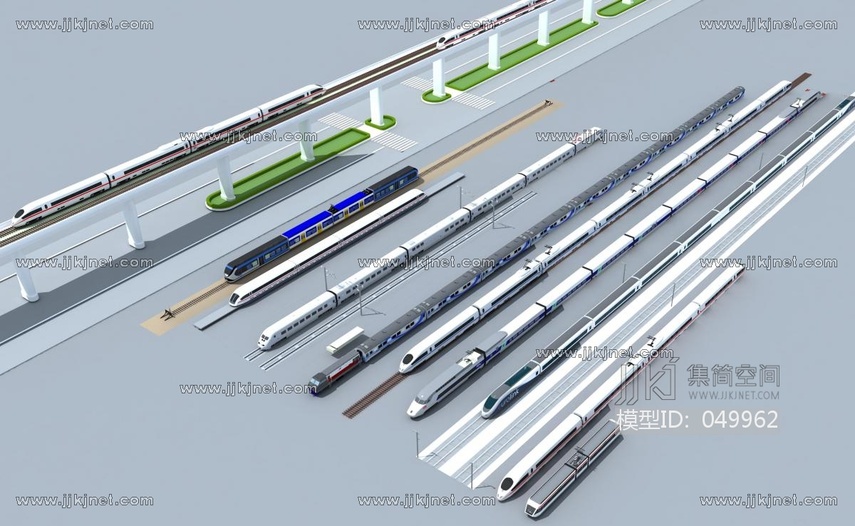 01高铁轻轨地铁高架桥轨道列车 3d模型下载 [模型ID:49962]