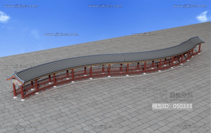 H50-0625古建连廊中式古建长廊连廊亭子凉亭 3d模型下载 [模型ID:50333]